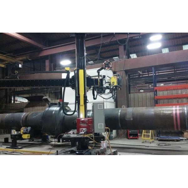 Column and boom manipulators fill a different need than rollers androtary welding positioners in automated facilities, holding the weldingtorch instead of the weldment. They often weld parts that aresupported either by rotary positioners or by rollers and primarily havetwo degrees of freedom, moving vertically and in one directionhorizontally, with some also able to rotate about their base.